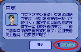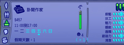 這是白英目前的工作欄。右邊技能處框起來表示至少要達到的技能等級